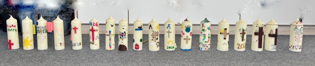 Der Jahrgang 7 gestaltete im Religionsunterricht Kerzen für die Marienkirche der Gemeinde Ochtrup.