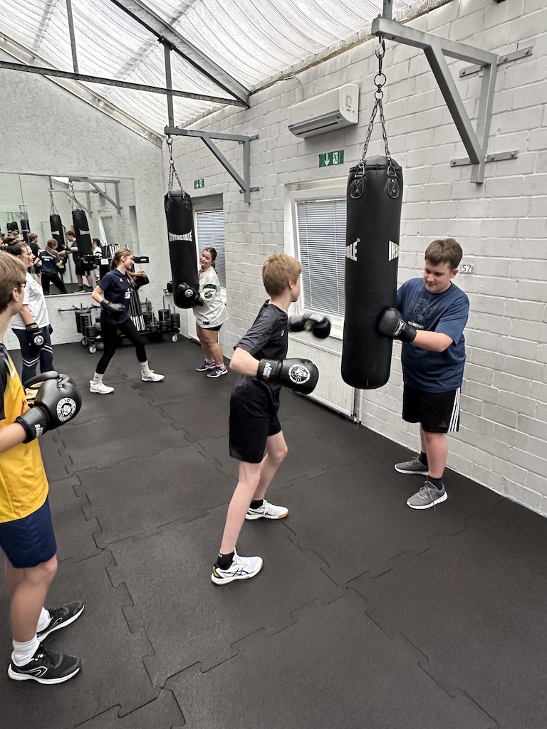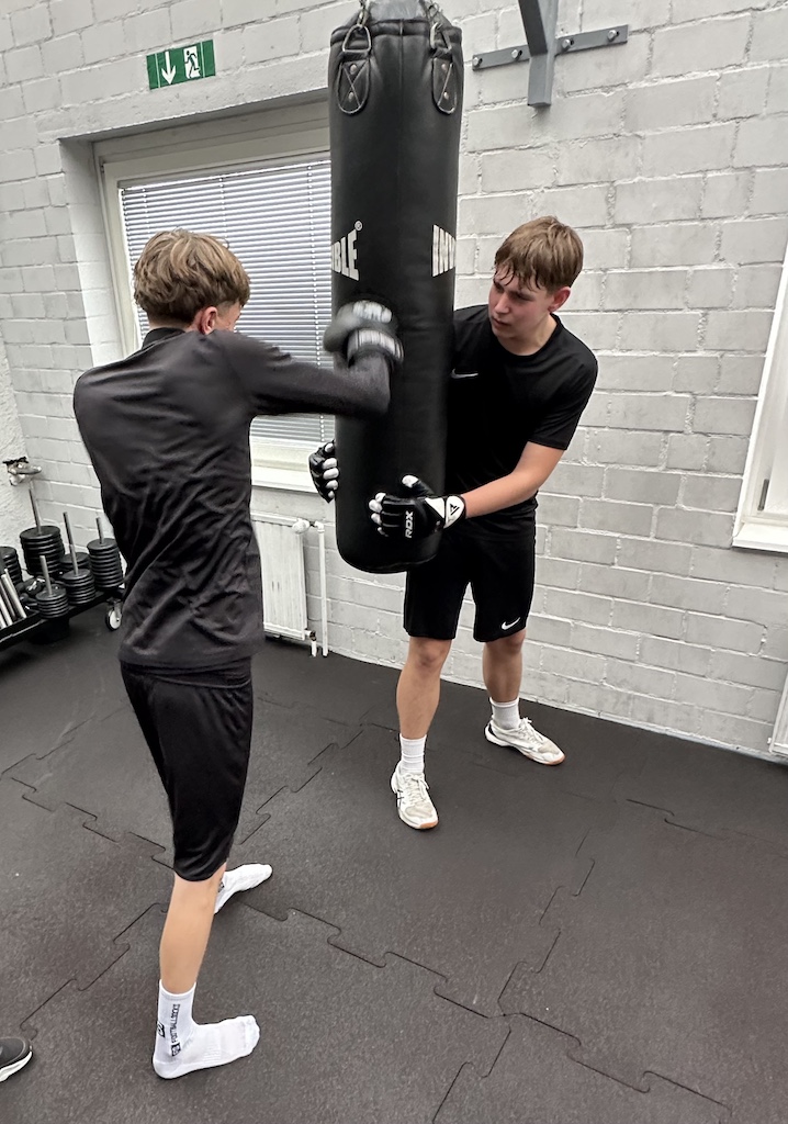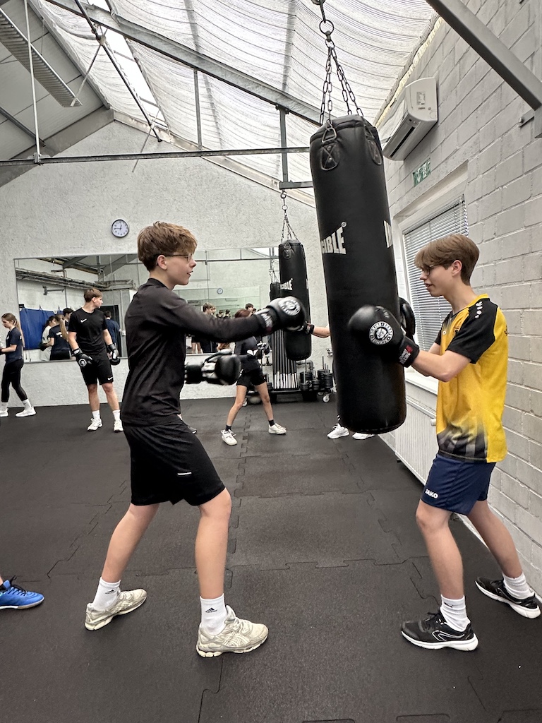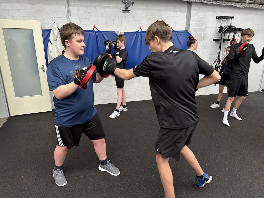 Dabei lernten die Schülerinnen und Schüler die Grundlagen der Boxtechnik kennen und verbesserten Ausdauer, Koordination und Reaktionsfähigkeit. Abwechslungsreiche Übungen wie Seilspringen, Pratzentraining und das Training am Sandsack sorgten für ein intensives Workout. Mit viel Motivation und Engagement waren alle dabei und meisterten das intensive, schweißtreibende Training mit Begeisterung.