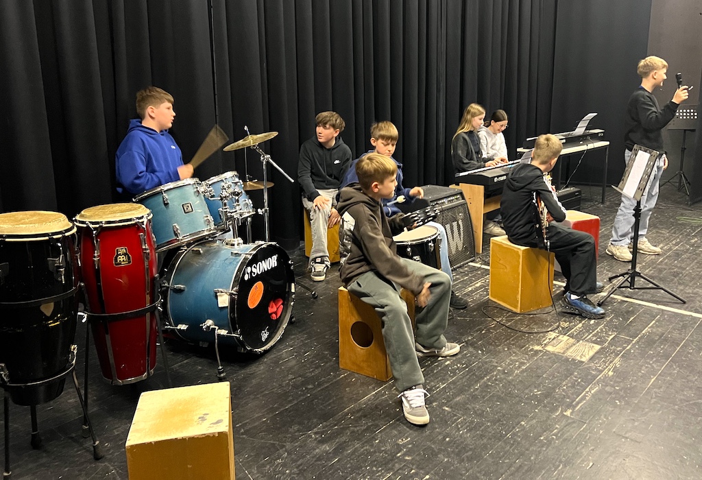 Die Songauswahl reichte von Rock über Pop bis hin zu bekannten Schlagern. Die Beiträge wurden auf unterschiedliche Weise gestaltet: Einige Stücke wurden mit Instrumenten begleitet, andere mit Body Percussion umgesetzt. Gesangliche Darbietungen, sowie tänzerische Elemente sorgten zusätzlich für eine lebendige und mitreißende Aufführung. Außerdem wurde ein kurzer Sketch über eine lustige Castingshow – passend zum Thema Musik – aufgeführt, der das Publikum zum Schmunzeln brachte.