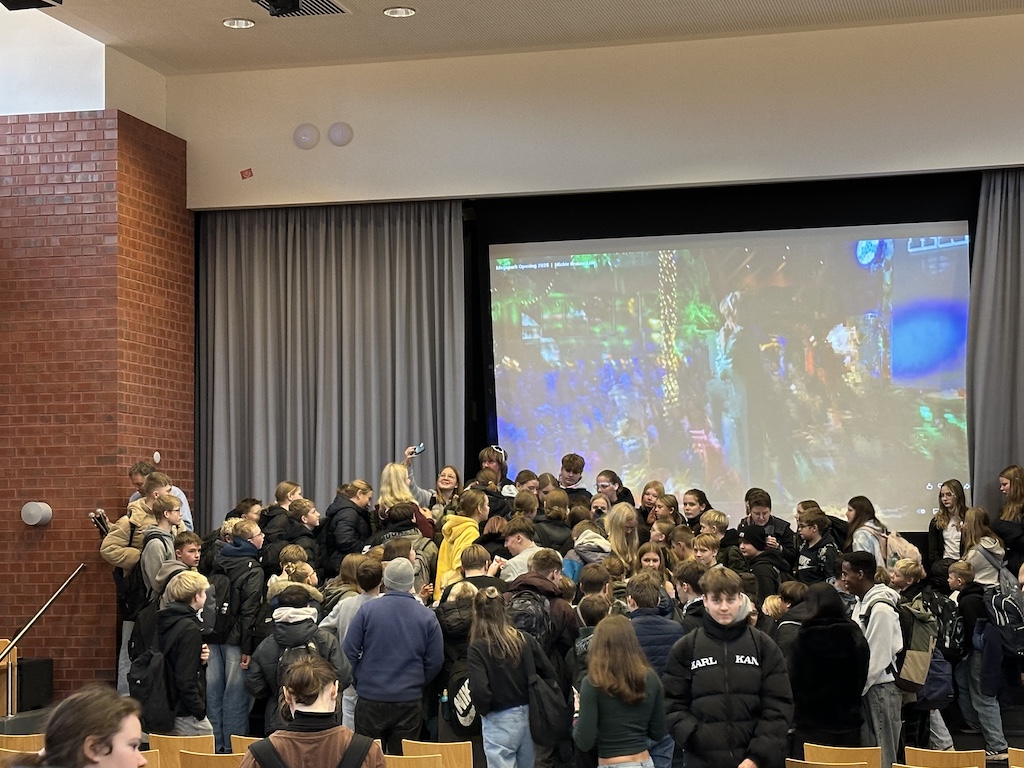 Nach dem Vortrag wollten die SchülerInnen natürlich gerne auch noch Fotos mit Mickie Krause machen und sich Autogramme holen. Die Begeisterung war groß, als der Sänger bereitwillig für Selfies posierte, mit den Schülern sprach und Autogramme gab.